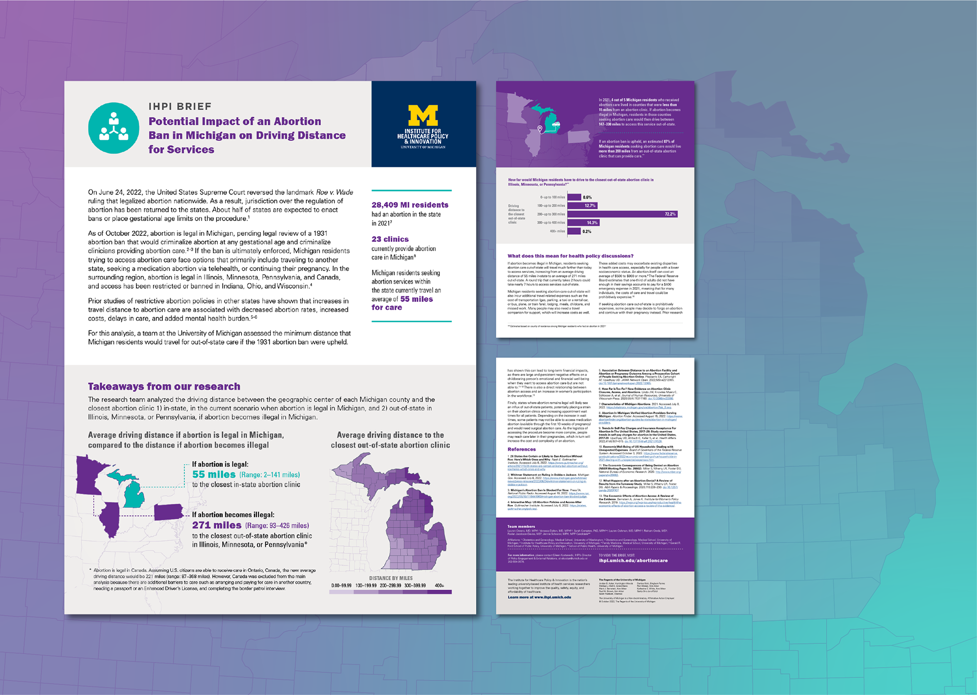 Potential Impact of an Abortion Ban in Michigan on Driving Distance for Services (October 2022), view brief at www.ihpi.umich.edu/abortioncare