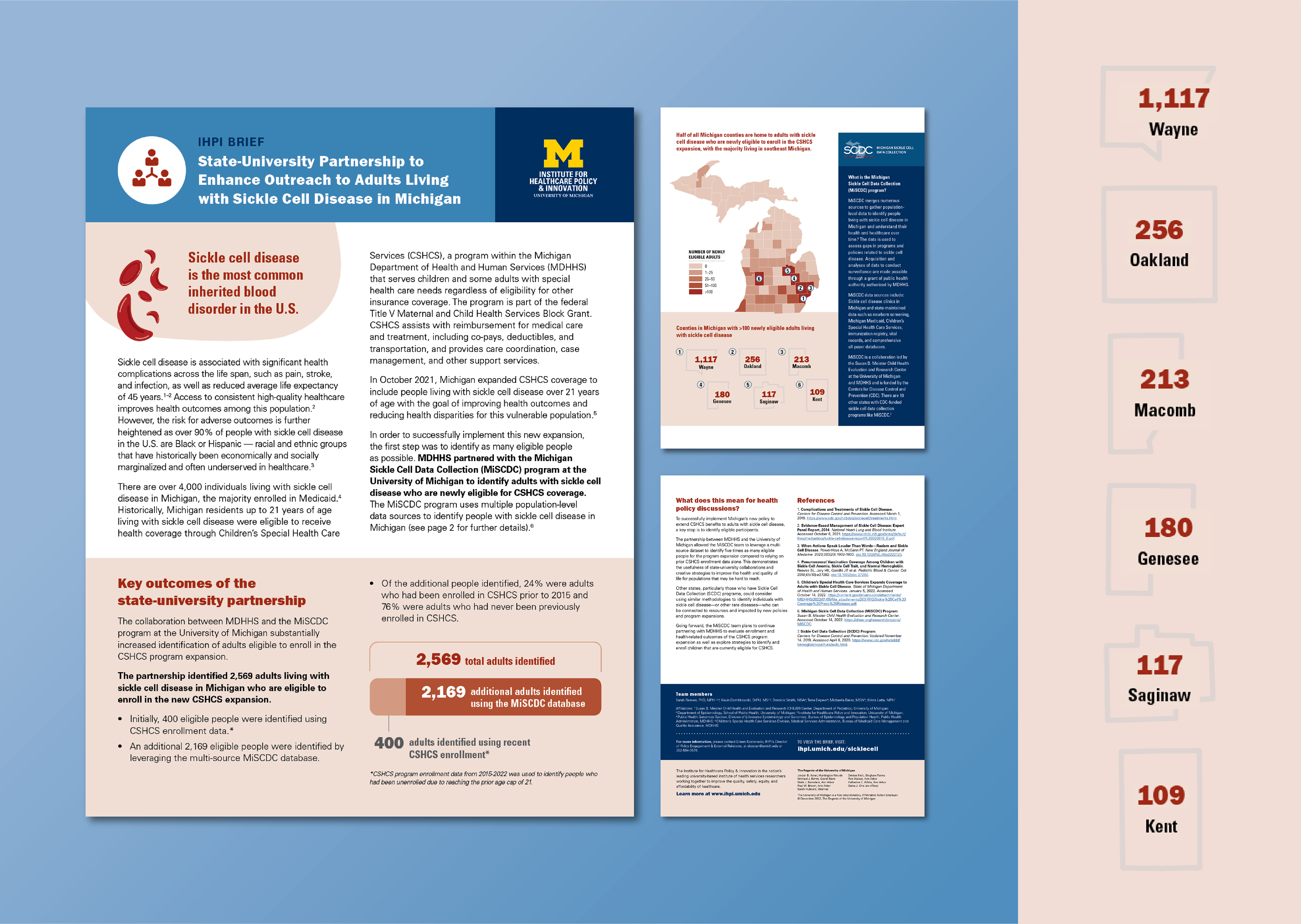 State-University Partnership to Enhance Outreach to Adults Living with Sickle Cell Disease in Michigan (December 2022), view brief at www.ihpi.umich/sicklecell