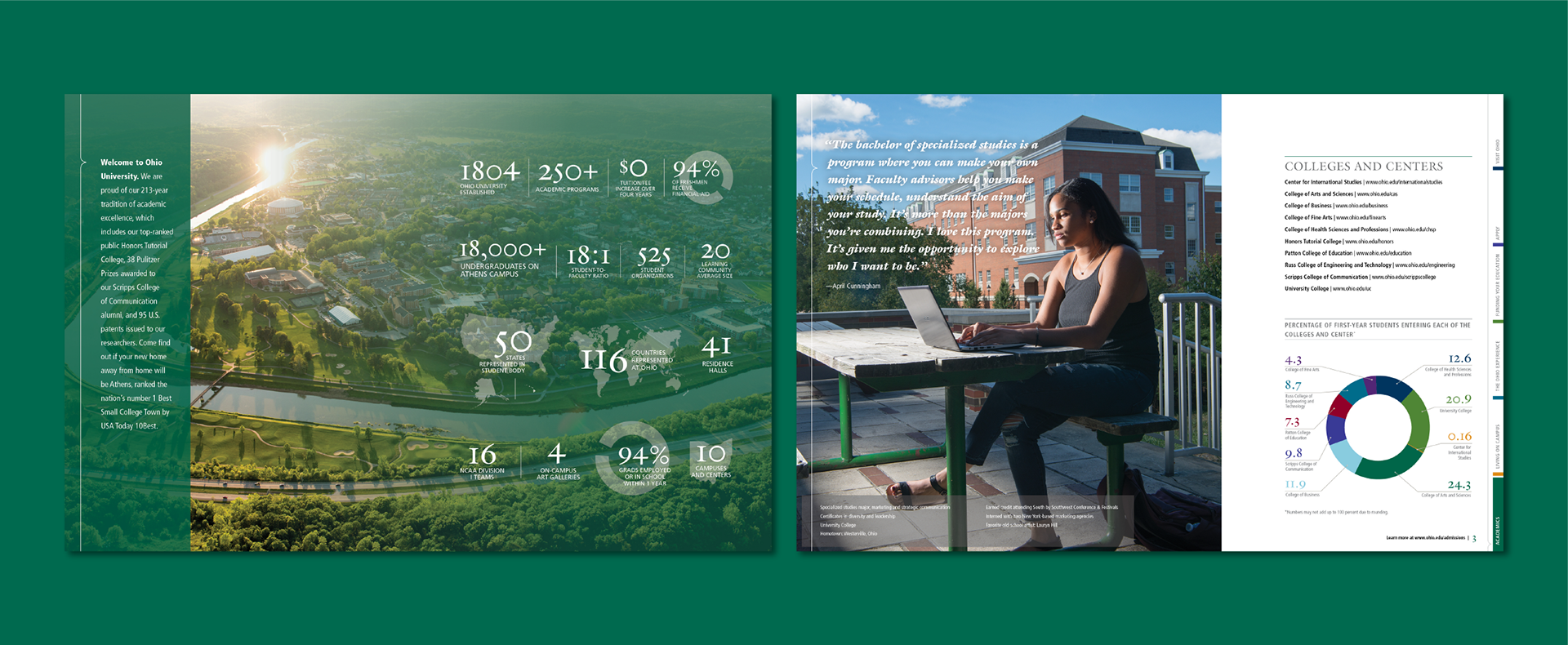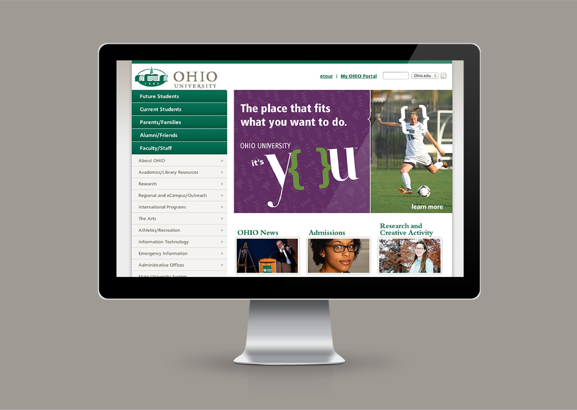 In 2010, the Ohio University Communications and Marketing (UCM) department decided to rebrand the university based on the findings in a recent brand perception survey. UCM had two primary objectives: